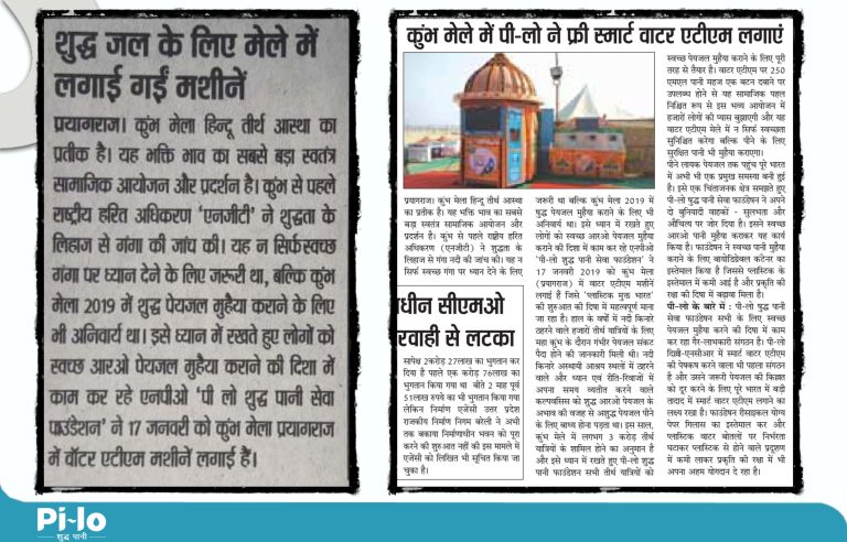 Pi-lo proudly participated in the Kumbh Mela 2019 at Prayagraj, Uttar Pradesh, as the sole drinking water supplier, providing essential services to millions of pilgrims attending one of the largest religious gatherings in the world. Through its innovative and sustainable approach, Pi-lo ensured the availability of free drinking water and hand washing units throughout the event, contributing significantly to the comfort and hygiene of attendees. This initiative highlighted Pi-lo’s dedication to supporting large-scale cultural events with efficient and reliable water solutions.